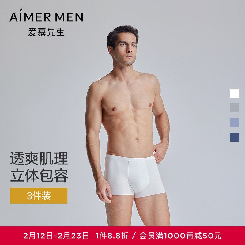 三条装男士内裤莫代尔柔软透气青年无痕短裤汉麻抑菌底裆四平角裤