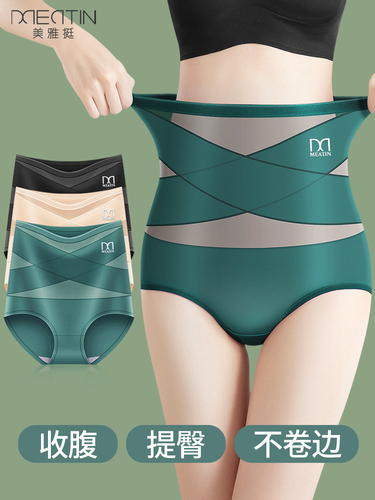 纯棉内裤女高腰大码100%全棉女士收腹提臀抗菌透气少女生三角裤头