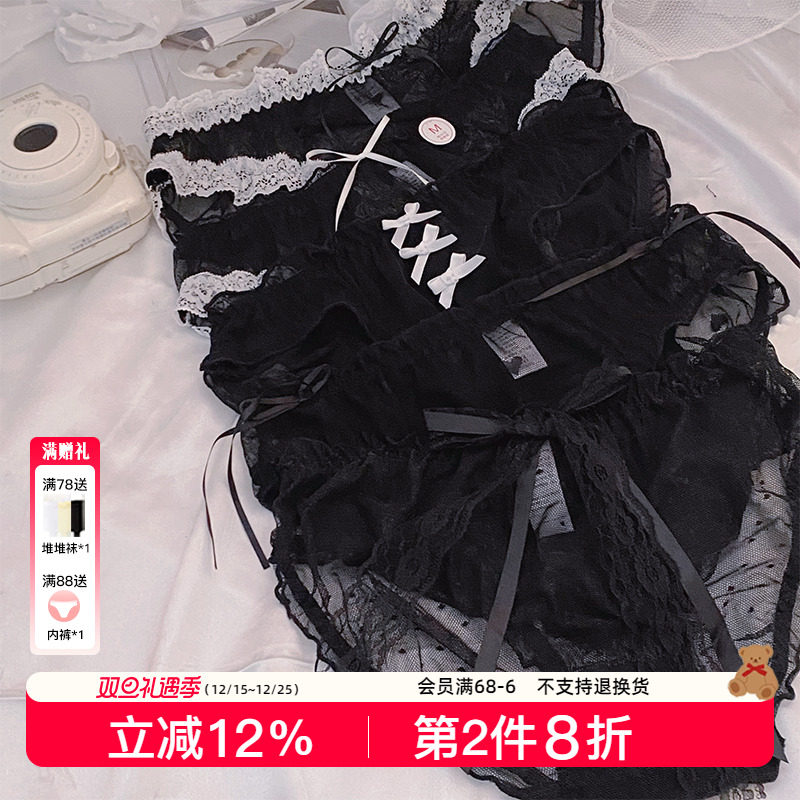 *暗黑甜心*黑色内裤5条组合性感网纱秋季薄款情调少女高颜值短裤