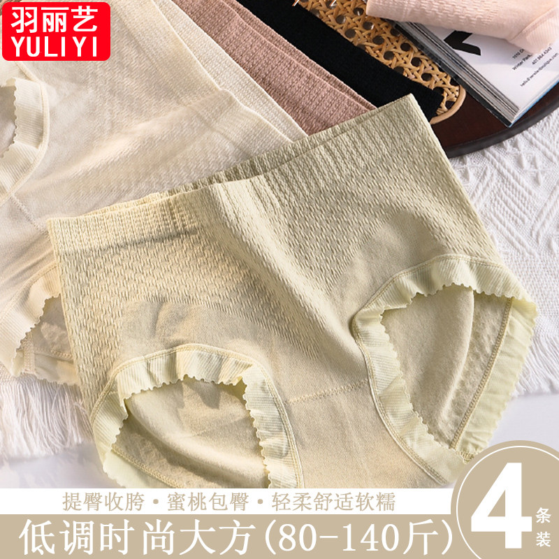4/条装无缝一体式高腰内裤女高弹收腹轻柔舒适贴合包臀女士三角裤