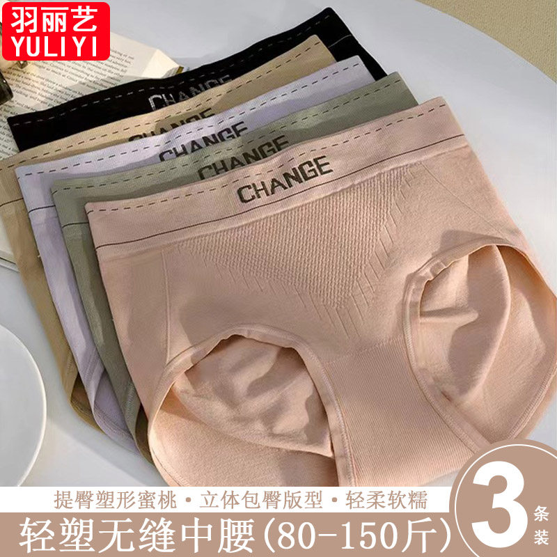 轻塑无缝美感中腰内裤女低饱和配色轻柔软糯裸感舒适包臀三角裤