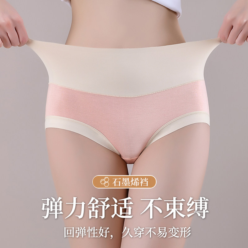 新款石墨烯抑菌内裤女高腰大码轻收腹提臀舒适透气棉质女士三角裤