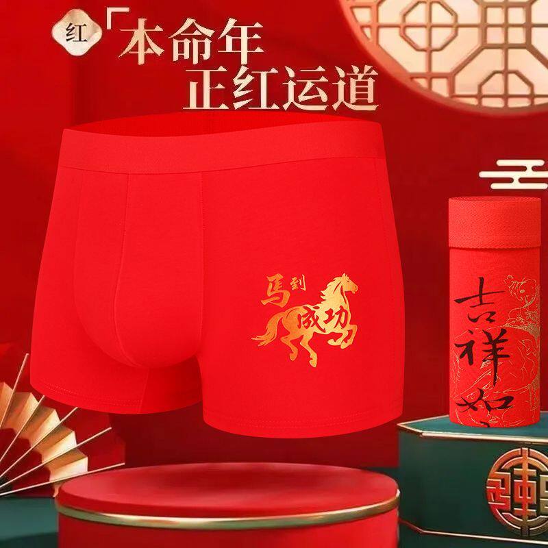 纯棉新款马年本命年男士内裤红色结婚喜庆平角裤爆款潮四角短裤头