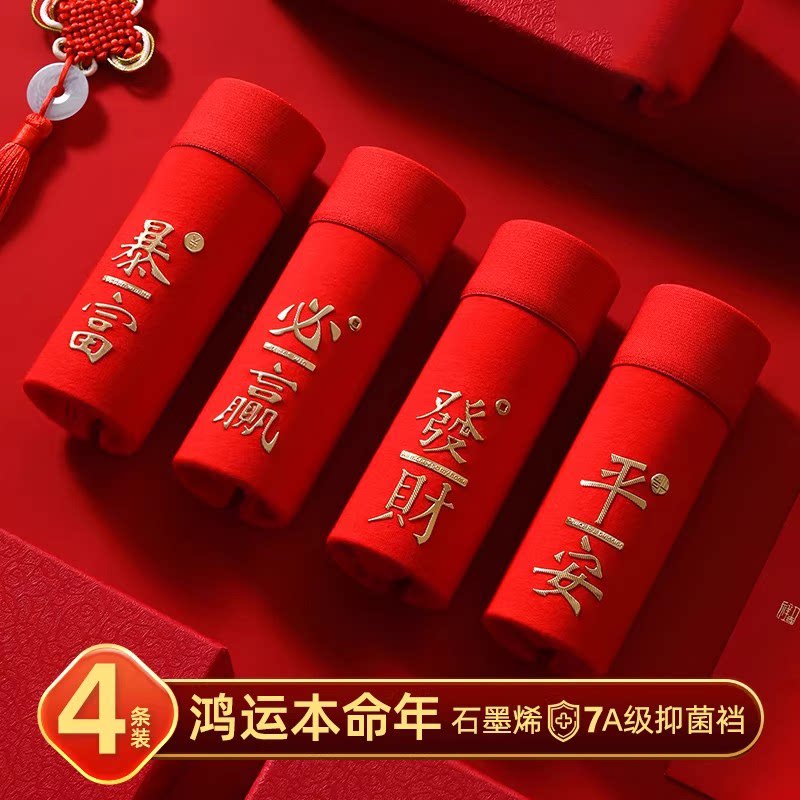男士内裤大红色纯棉抗菌平角裤本命年马年礼物鸿运四角短裤礼盒装