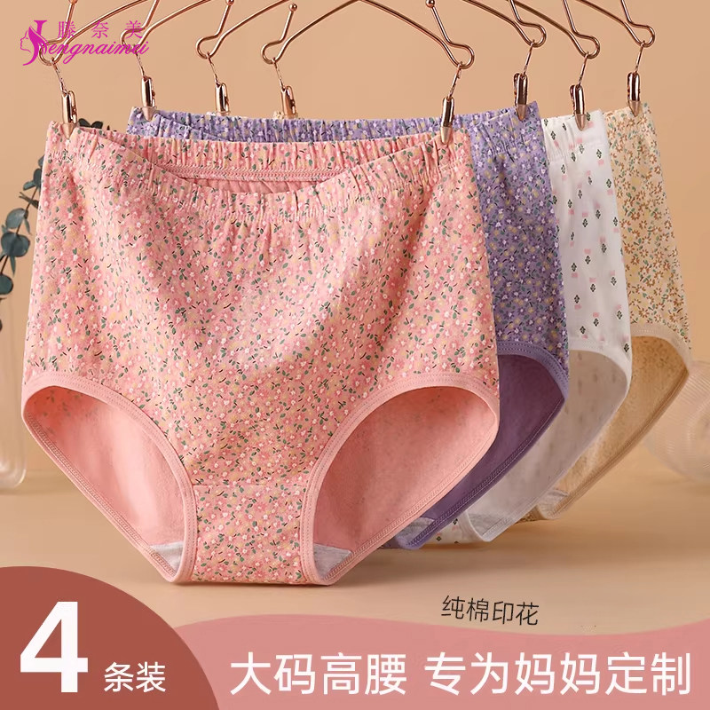 妈妈内裤女士纯棉透气中老年人三角裤宽松大码老人全棉短裤头裤衩