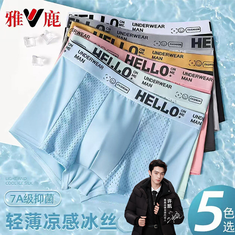 雅鹿冰丝内裤男士2026夏季石墨烯抗菌平角裤衩透气大码四角裤男生
