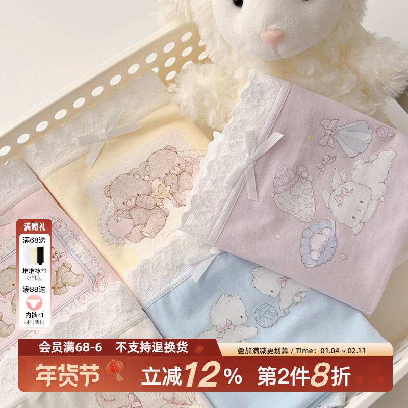 棉文化内裤女纯棉新疆棉100%全棉抗菌薄透气卡通少女低腰三角裤