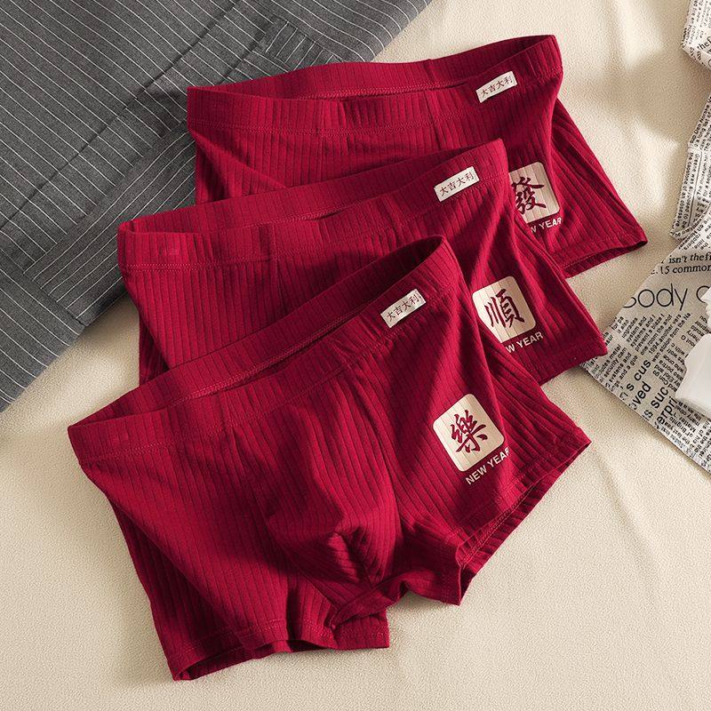 本命年红色男士内裤男款结婚纯棉透气喜庆大码平角新年四角裤衩
