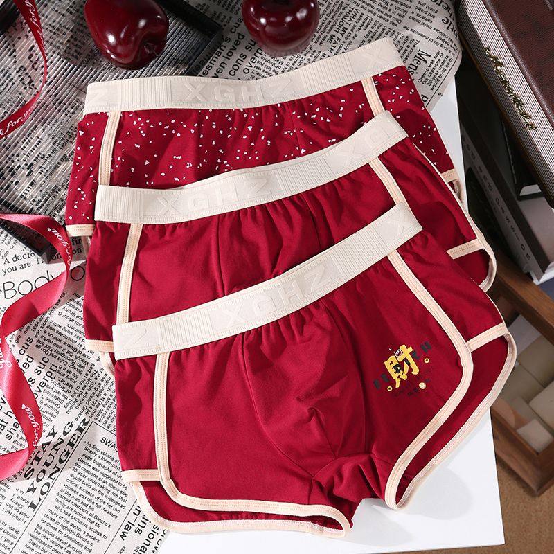 本命年内裤男士纯棉红色结婚短裤平角喜庆四角裤衩裤头男生透气