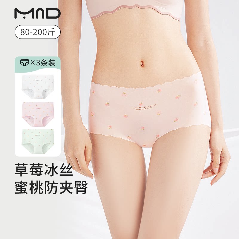 冰丝内裤女纯棉裆无痕薄款甜美少女学生中腰透气大码女士三角短裤