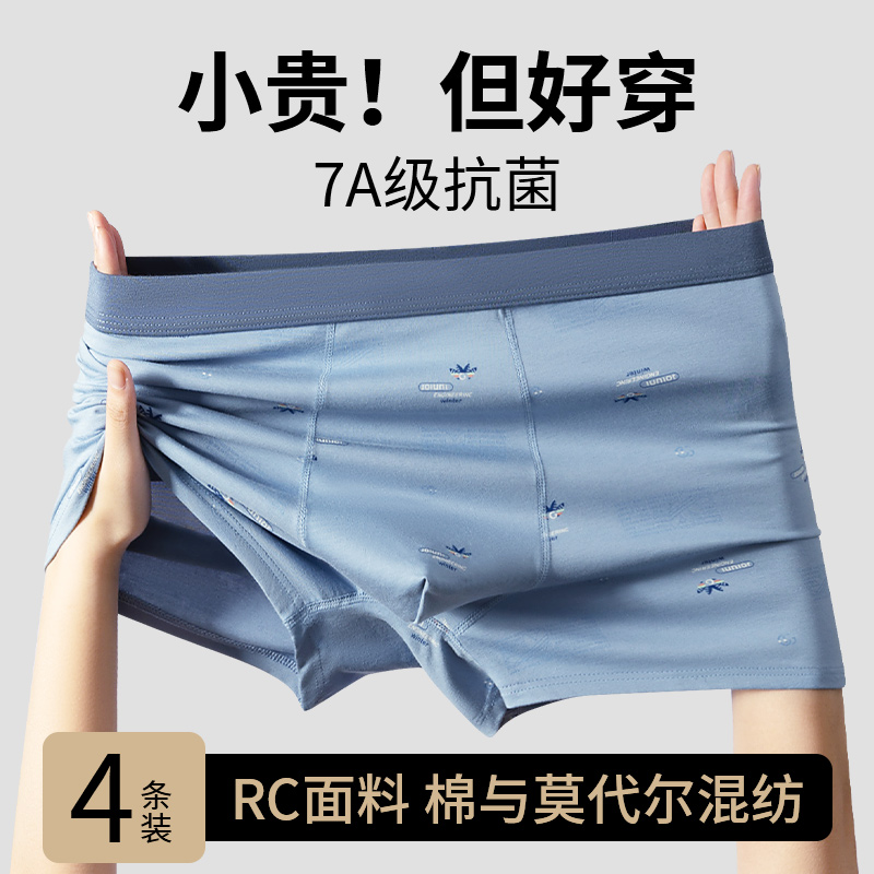 竹纤维男内裤纯色中腰男士平角裤无痕棉四角短裤透气裤头春秋季款