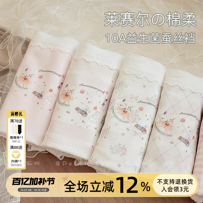 「山山漫漫」春夏新款15cm纯棉加长裆女内裤中腰包臀透气10a抑菌