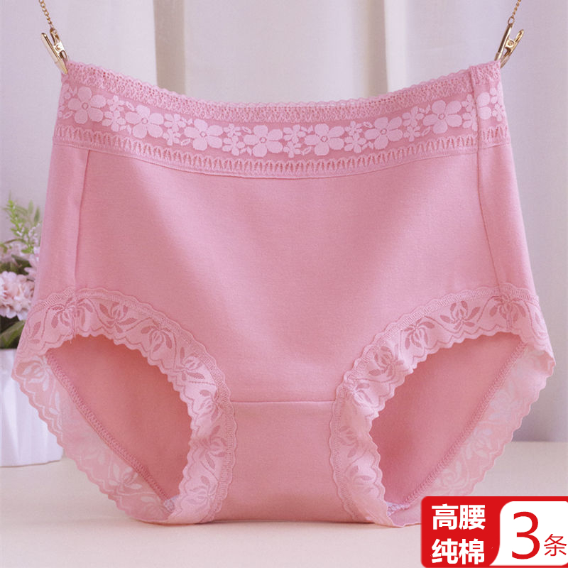 3条中高腰大码内裤女胖mm200斤蕾丝性感无痕超薄网纱透明收腹提臀