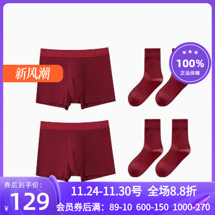 爱慕乎兮当红不让蛇年限定男士内裤+袜子礼盒装 囍红色 HN2T2423