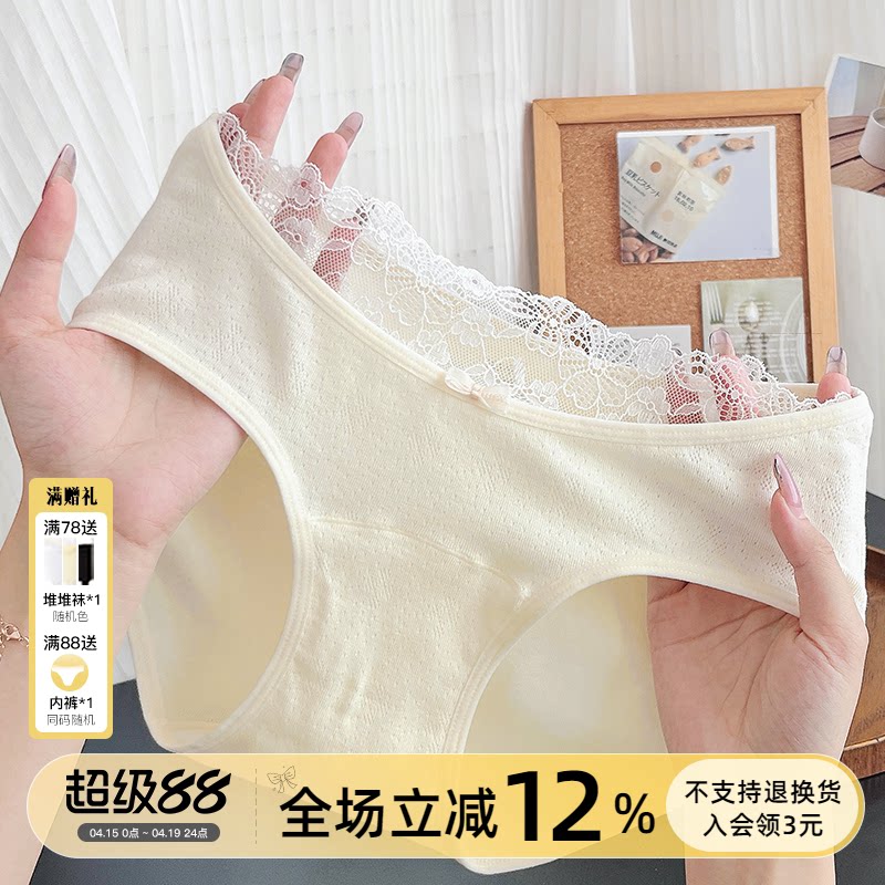 黛安芬性感蕾丝花边纯棉亲肤透气女士三角内裤B75-026