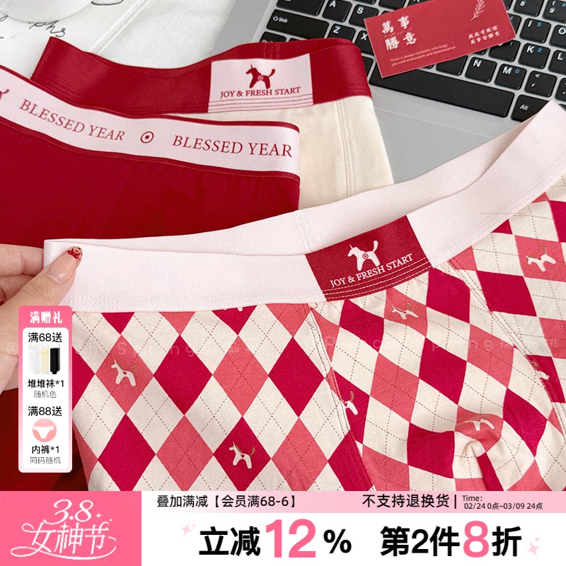 『以梦为马』天选本命红!A类棉男士平角内裤舒适纯棉10A抑菌四角