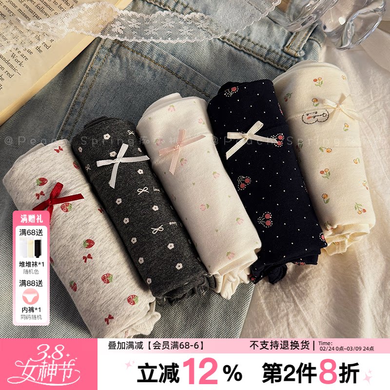 四季款透气少女内裤纯棉全棉底裆无痕中腰甜美碎花女生三角裤新款
