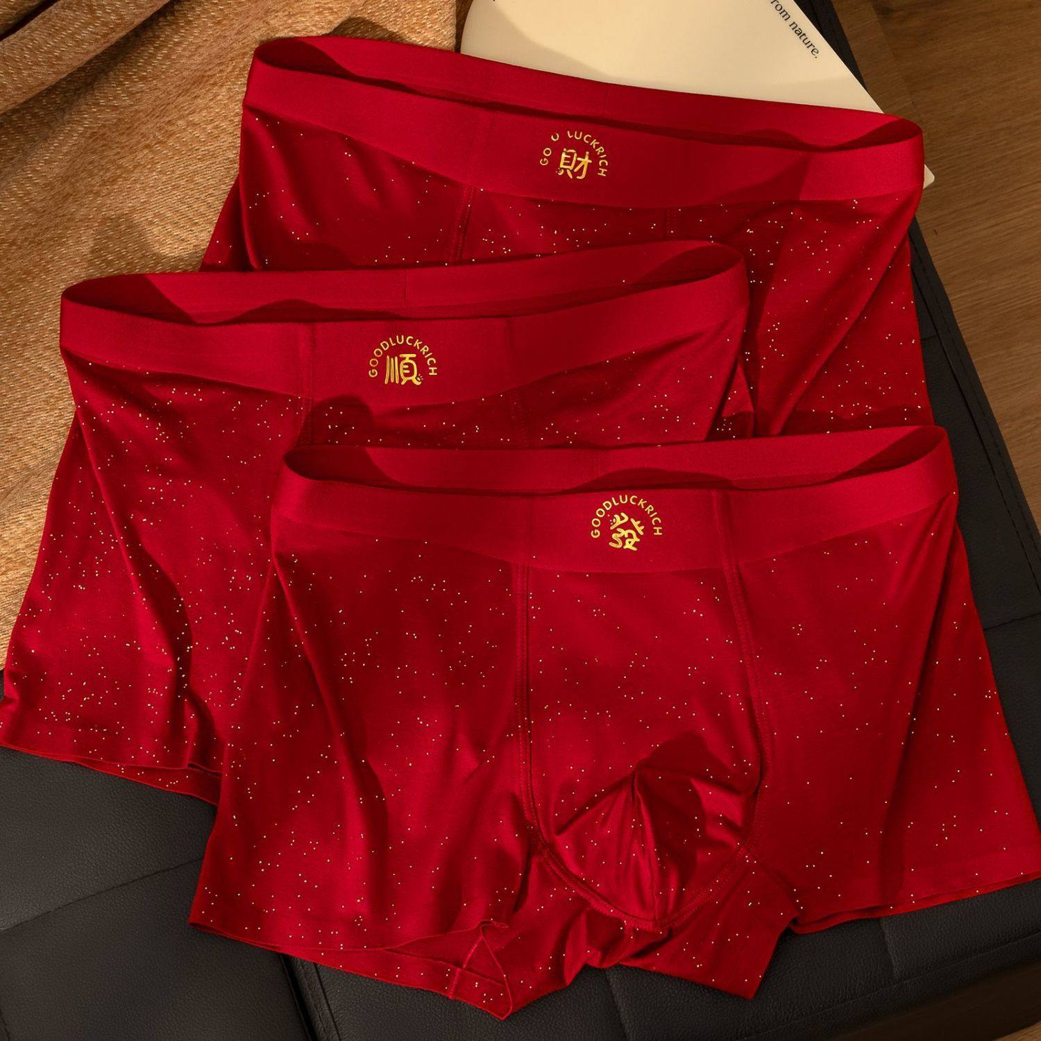 正品运动男士冰丝红内裤男莫代尔棉透气无痕平角裤本命年结婚礼物