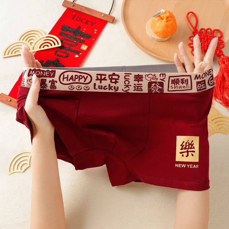 马年本命年红色男士男生内裤纯棉结婚平角礼盒装男款短裤四角短裤