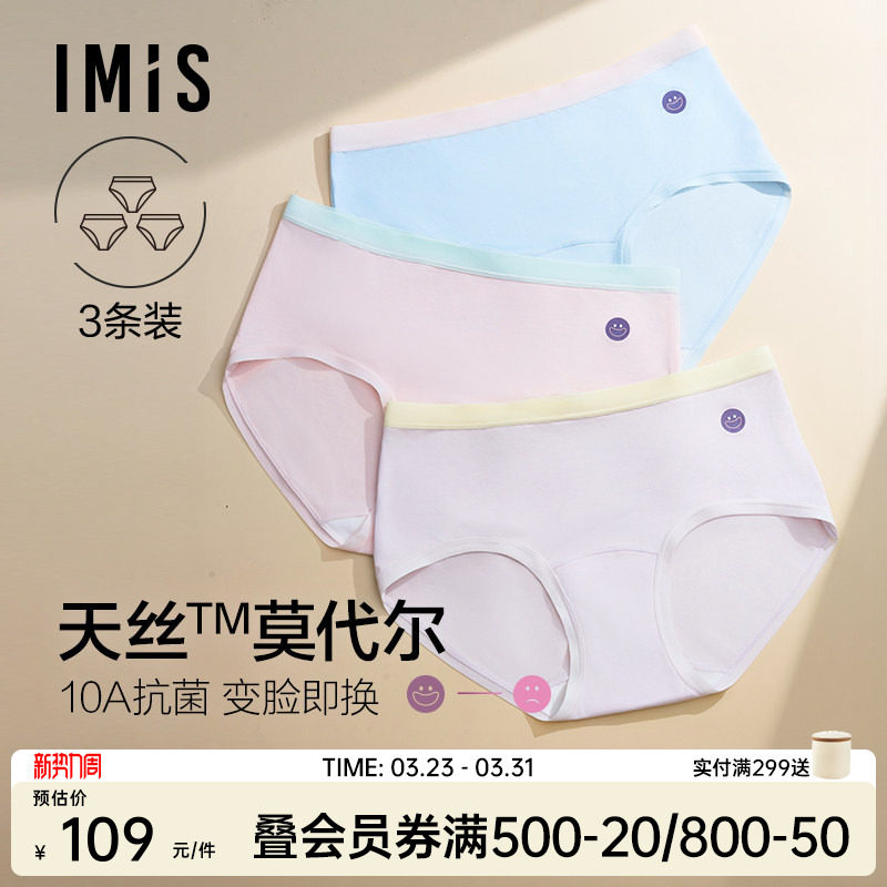 爱美丽3条装备忘裤10A抗菌天丝莫代尔内裤女桑蚕丝底裆中腰三角裤