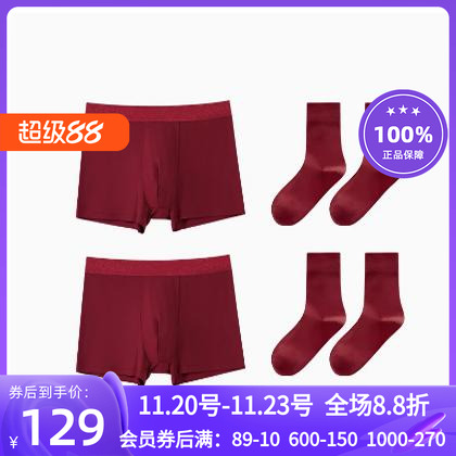 USM本命年红色 男士内裤男平角裤 200支高端时尚个性鸿运结婚新品