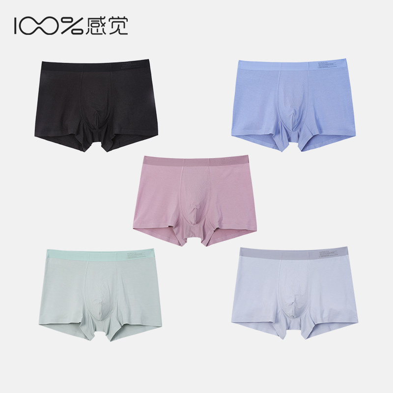 [118元3条]100%感觉舒适透气莫代尔桑蚕丝底档抗菌男士内裤平角裤
