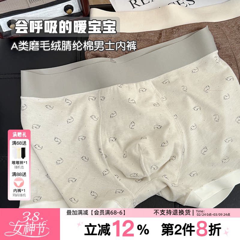 会呼吸的暖宝~A类磨毛男生内裤保暖纯棉底裆10A抑菌四角平角可爱