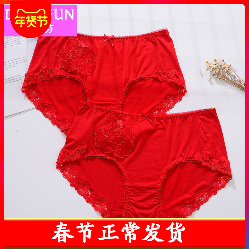 红色本命年无缝纯棉高腰大码女士内裤收腹提臀透气中年妈妈短裤头