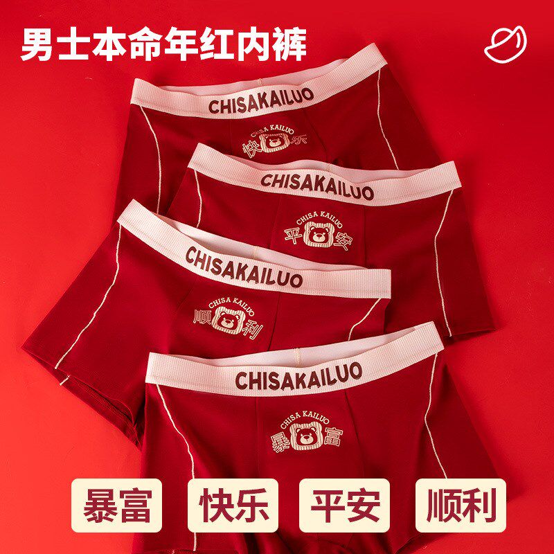 【下单立减50】男士红色内裤喜庆透气个性大码男生四角裤平角裤