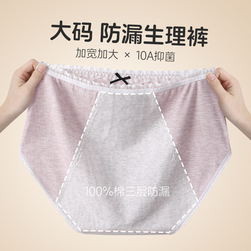 两条装大码生理内裤女月经期三层防漏抗菌纯棉裆姨妈专用安全裤
