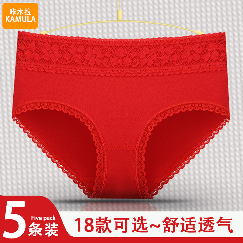 本命年中腰内裤女喜庆吉祥鸿运大红色舒适亲肤透气包臀女士三角裤