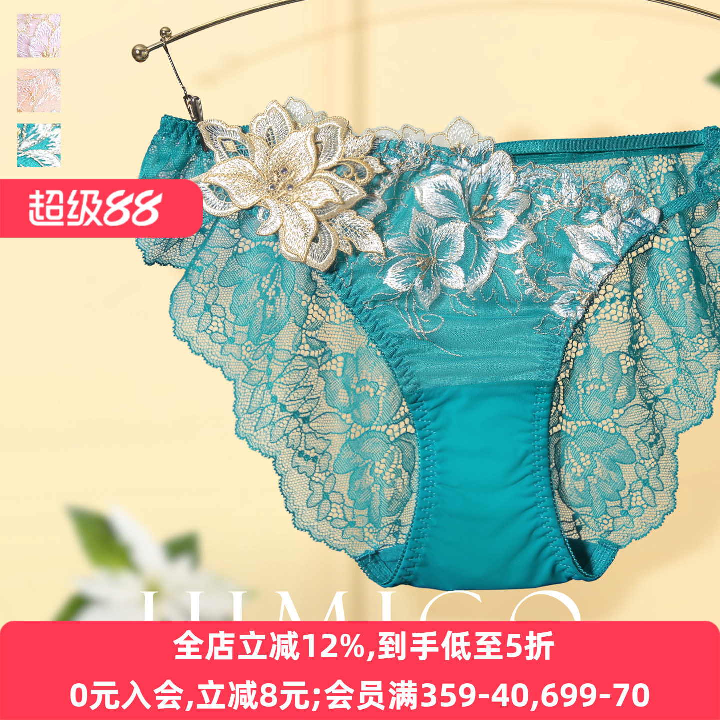 HIMICO内裤女薄款无痕日系透明蕾丝可爱刺绣性感低腰三角内裤028