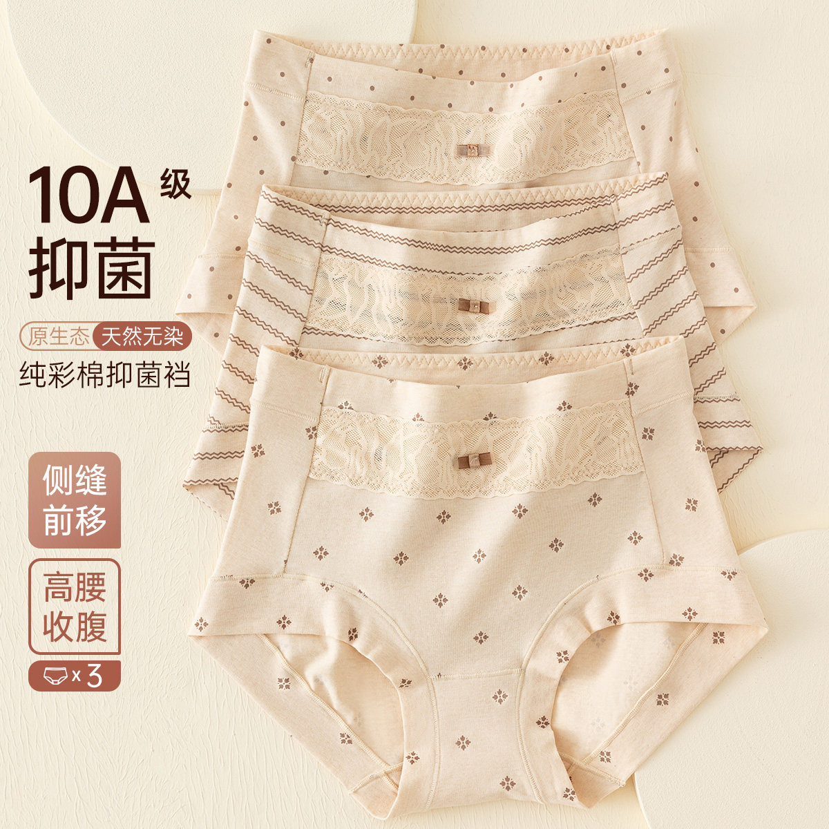 顶呱呱顶瓜瓜天然彩棉内裤女士高腰收腹纯棉底裆短裤纯棉三角裤