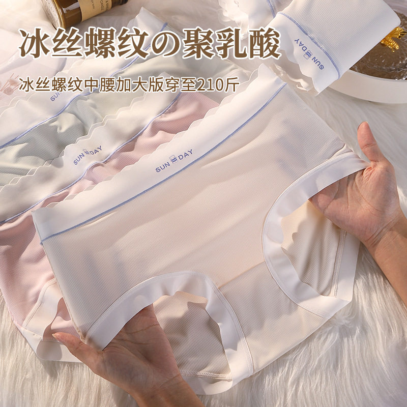 冰丝内裤女大码200斤纯棉裆聚乳酸抗菌日系少女生中腰无痕三角裤