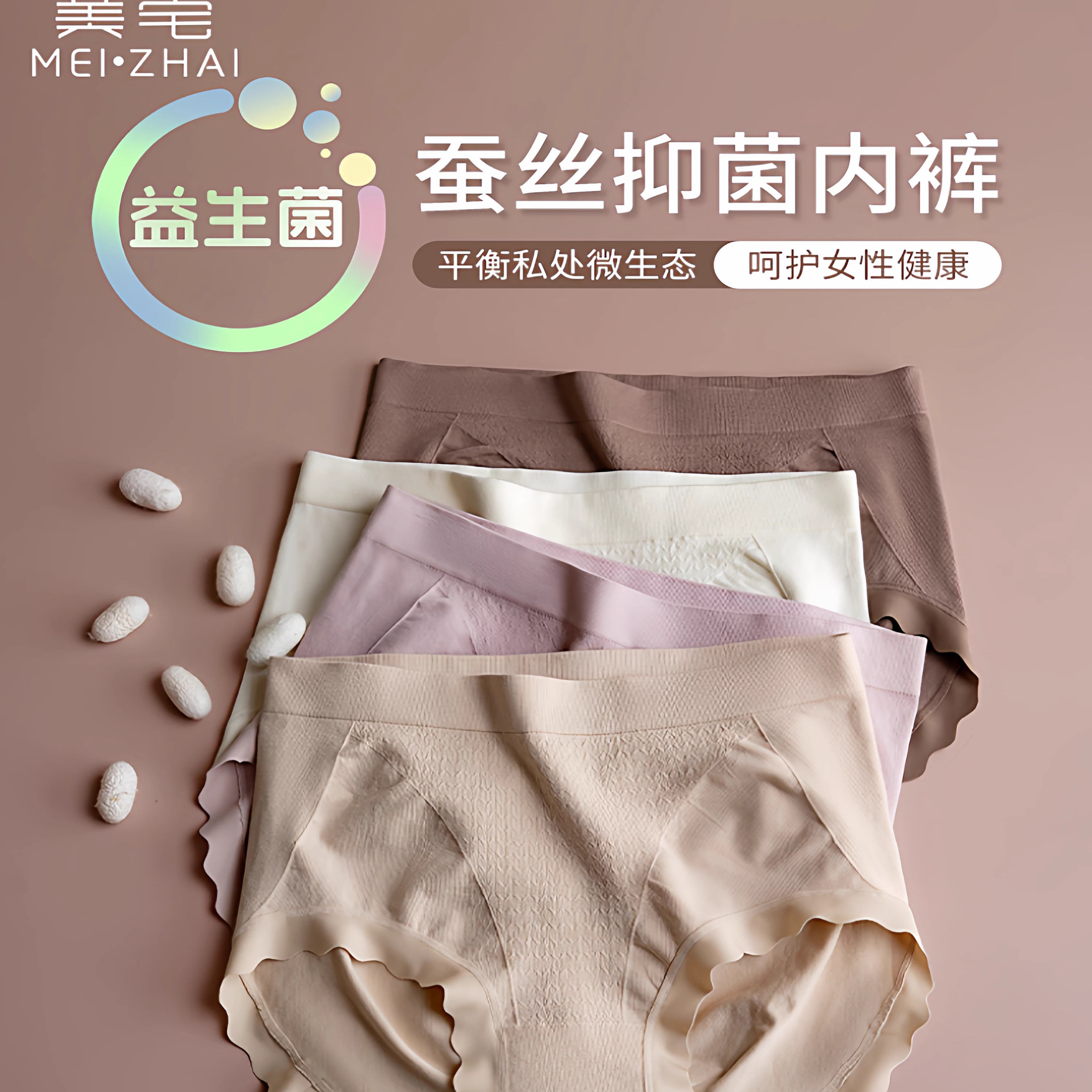 美宅内裤中腰桑蚕丝轻收腹裤四季款10A抗菌提臀无痕裸感透气女士