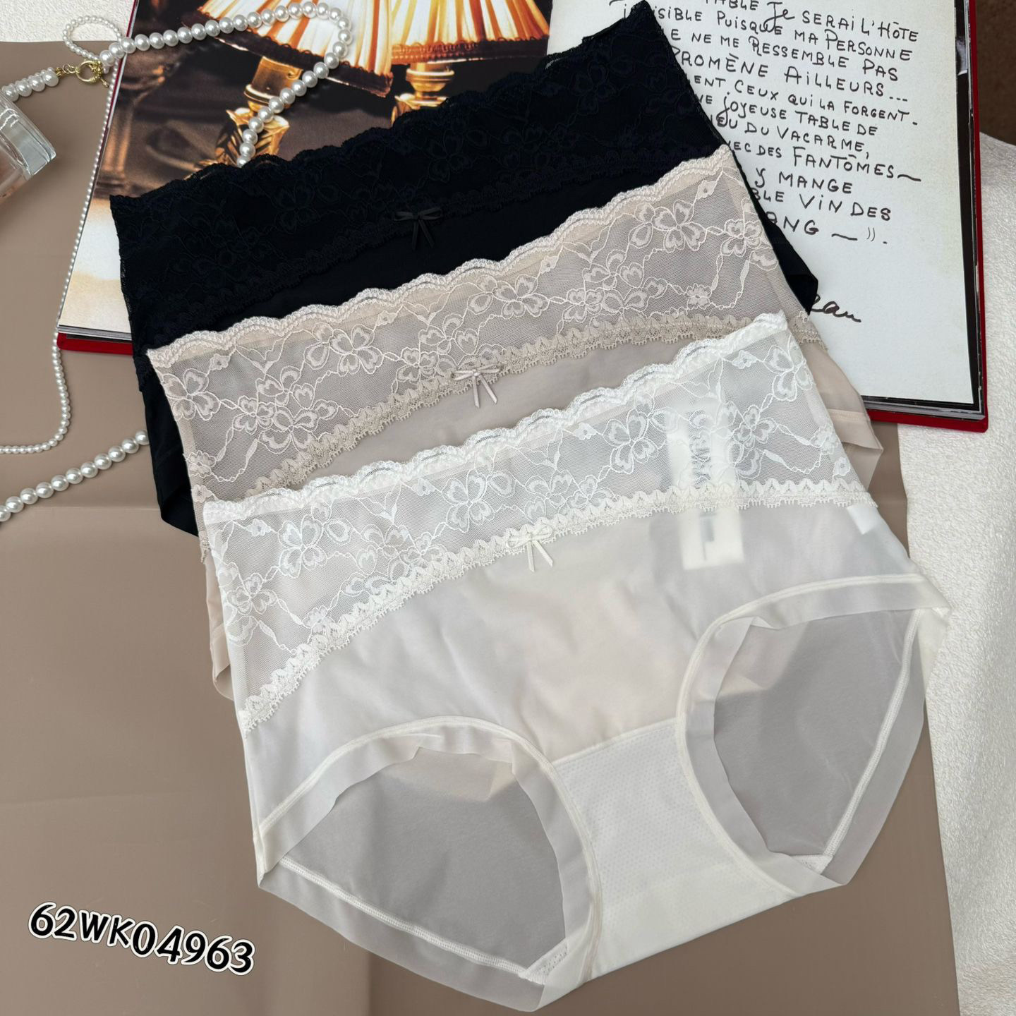 日系薄款性感全蕾丝内裤中腰透明无痕包臀女士三角裤胖MM大码透气