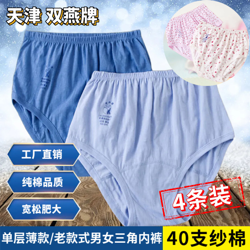 天津双燕40支纱男女内裤加肥纯棉针织中老年宽松大码三角内裤裤头
