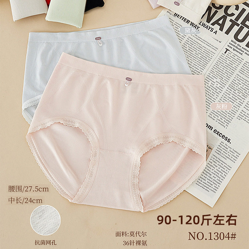 高腰大码内裤女莫代尔a类棉胖mm200斤无痕包臀桑蚕丝抗菌三角裤头