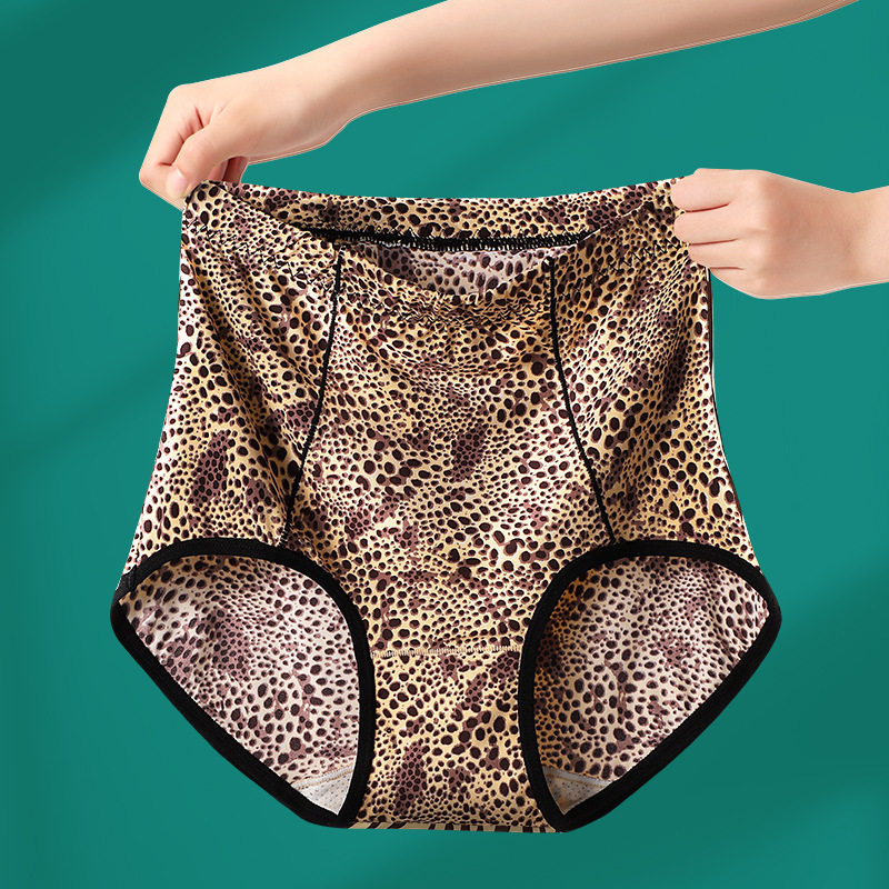 收腹提臀性感豹纹冰丝女士内裤高腰大码胖mm亲肤高弹夏季凉感裤头