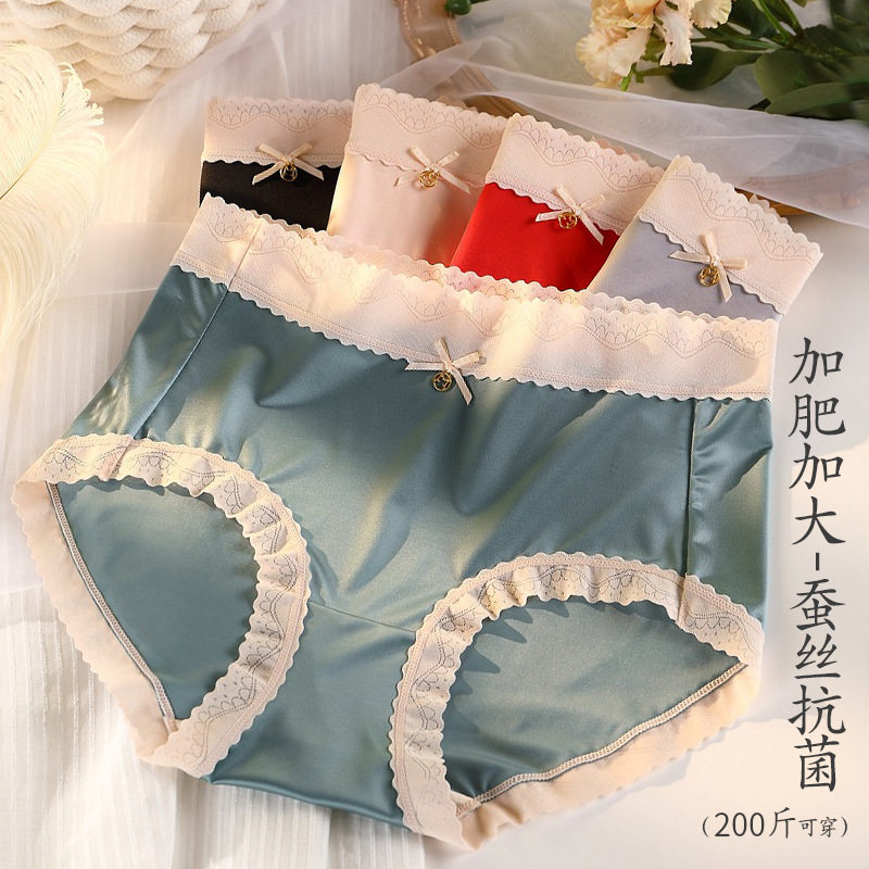 高端绸缎内裤女大码200斤缎面冰丝无痕法式蕾丝贵妇内裤蚕丝抗菌