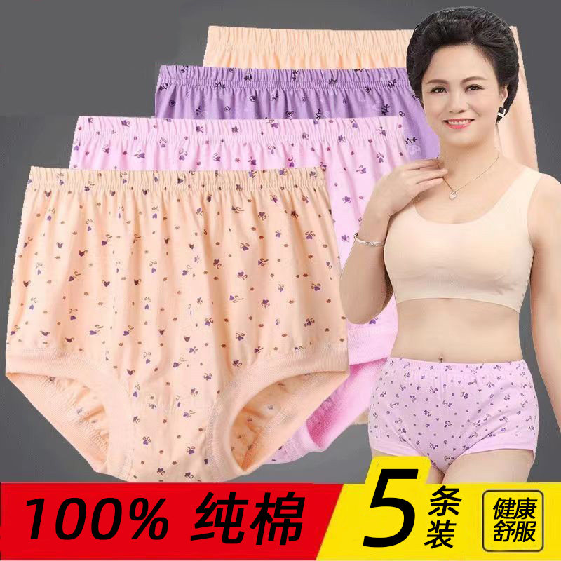 100%纯棉中老年人内裤女士高腰短裤宽松大码妈妈全棉大码三角裤