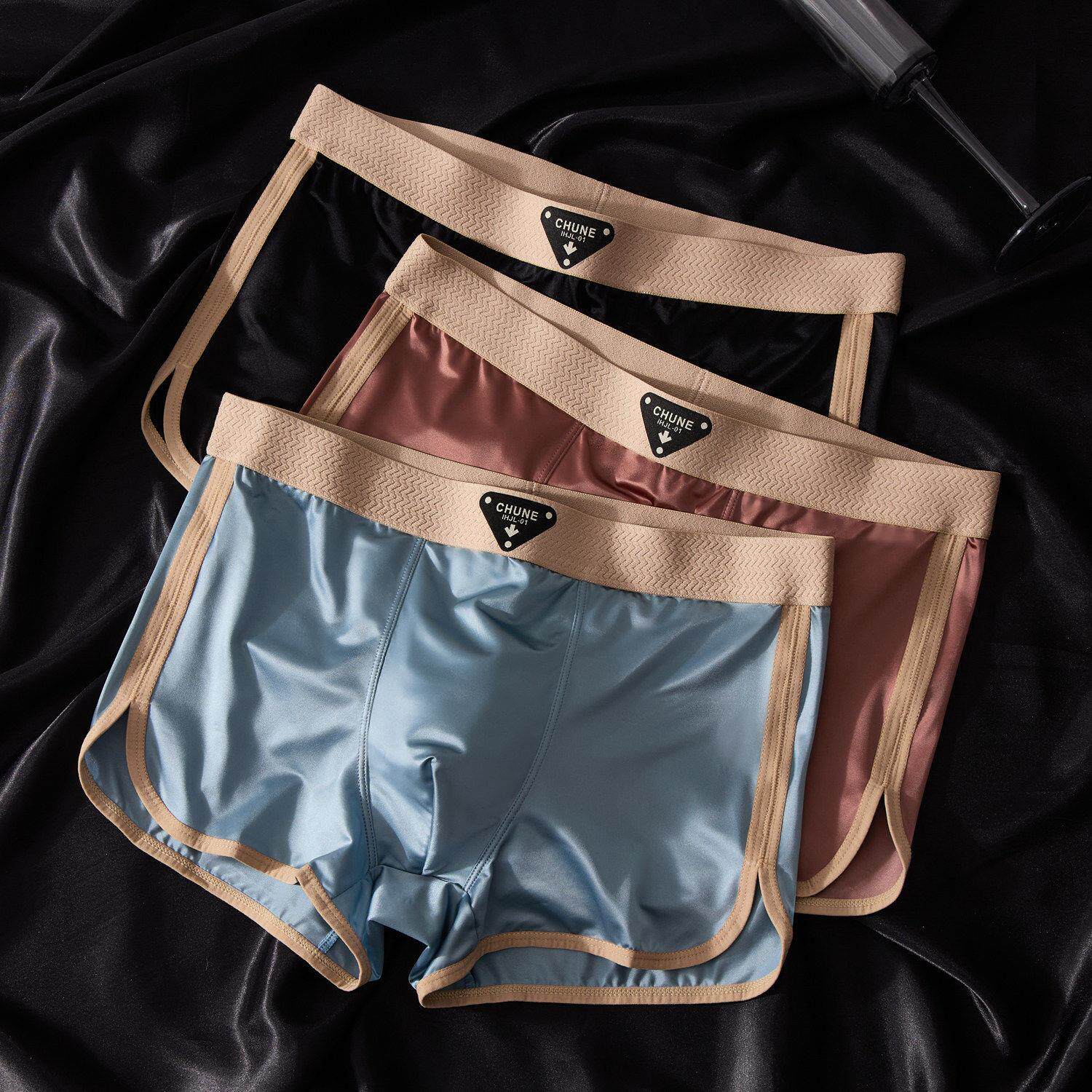 DGVV冰丝轻奢缎面男内裤高档丝滑宽松舒适透气四角裤潮流平角裤衩