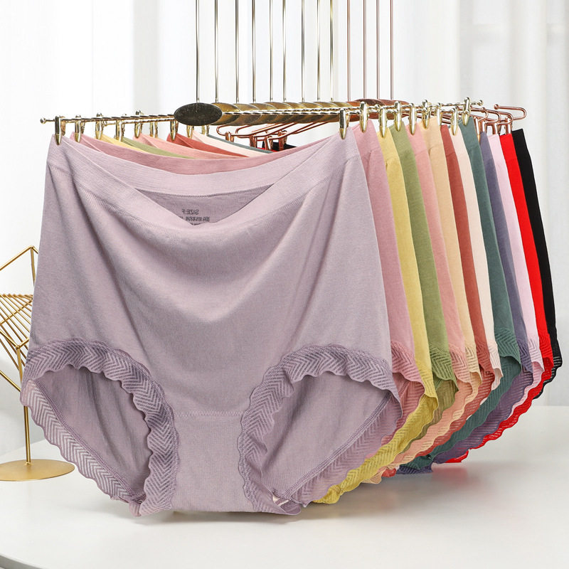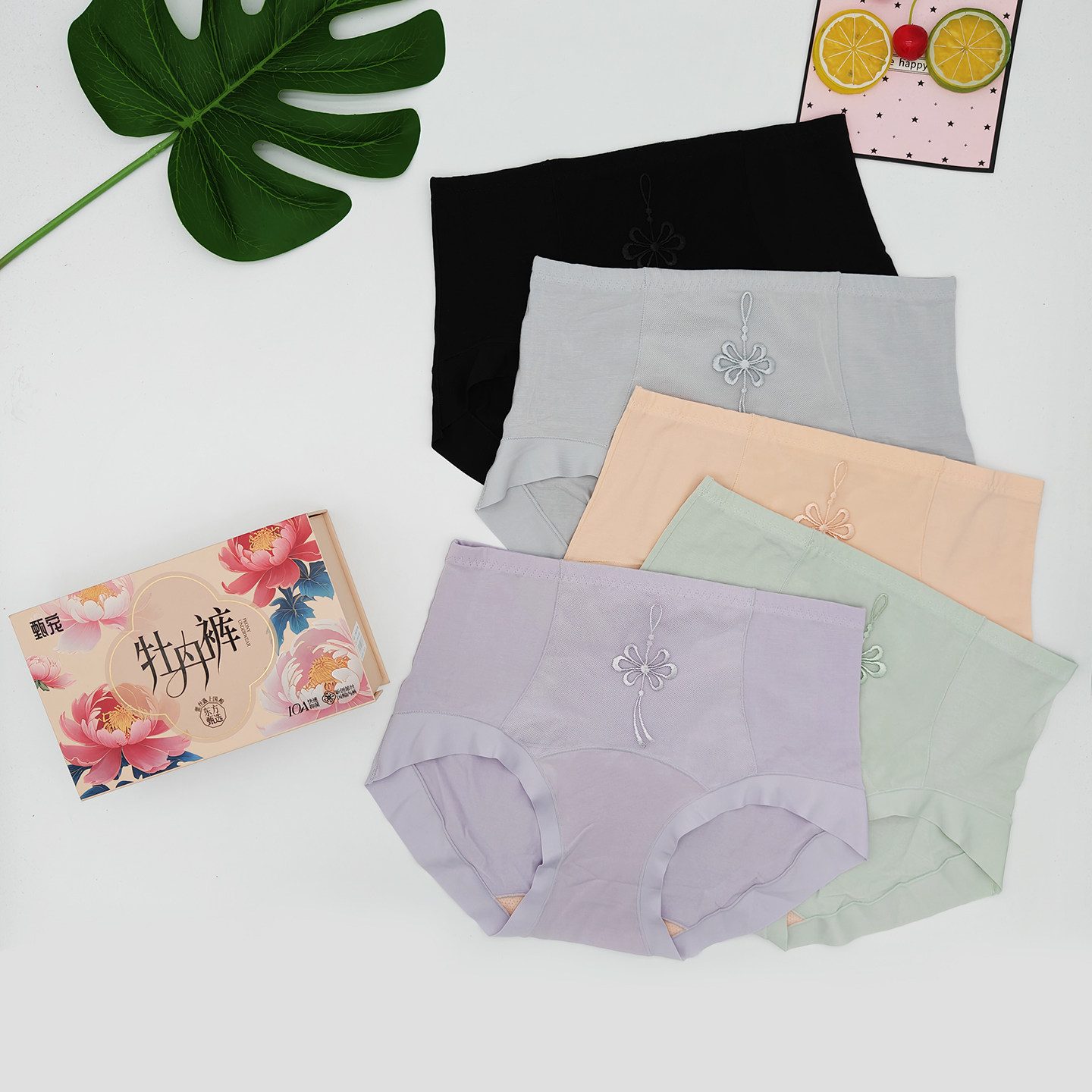 5条装甄宠女士内裤中高腰牡丹裤莫代尔棉包臀10A抑菌蕾丝三角短裤