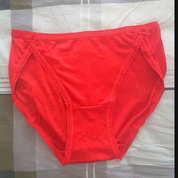 简约红色桑蚕丝内裤女士薄款大码针织轻薄透气内衣低腰真丝三角裤