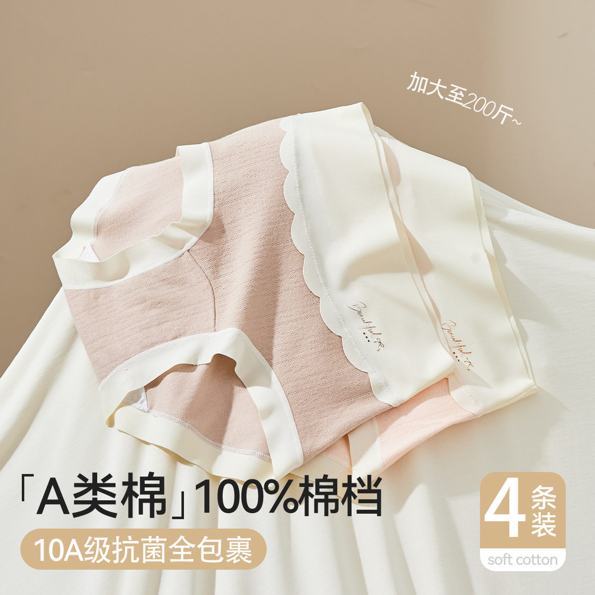 女士内裤纯棉a类棉10a抗菌全棉档高腰收腹无痕大码高级女式三角裤