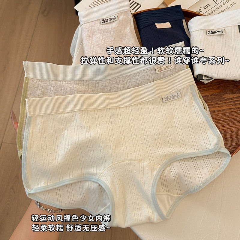 韩人日记纯棉内裤女 新款中腰7A抑菌弹力无痕纯简约棉平角三角裤