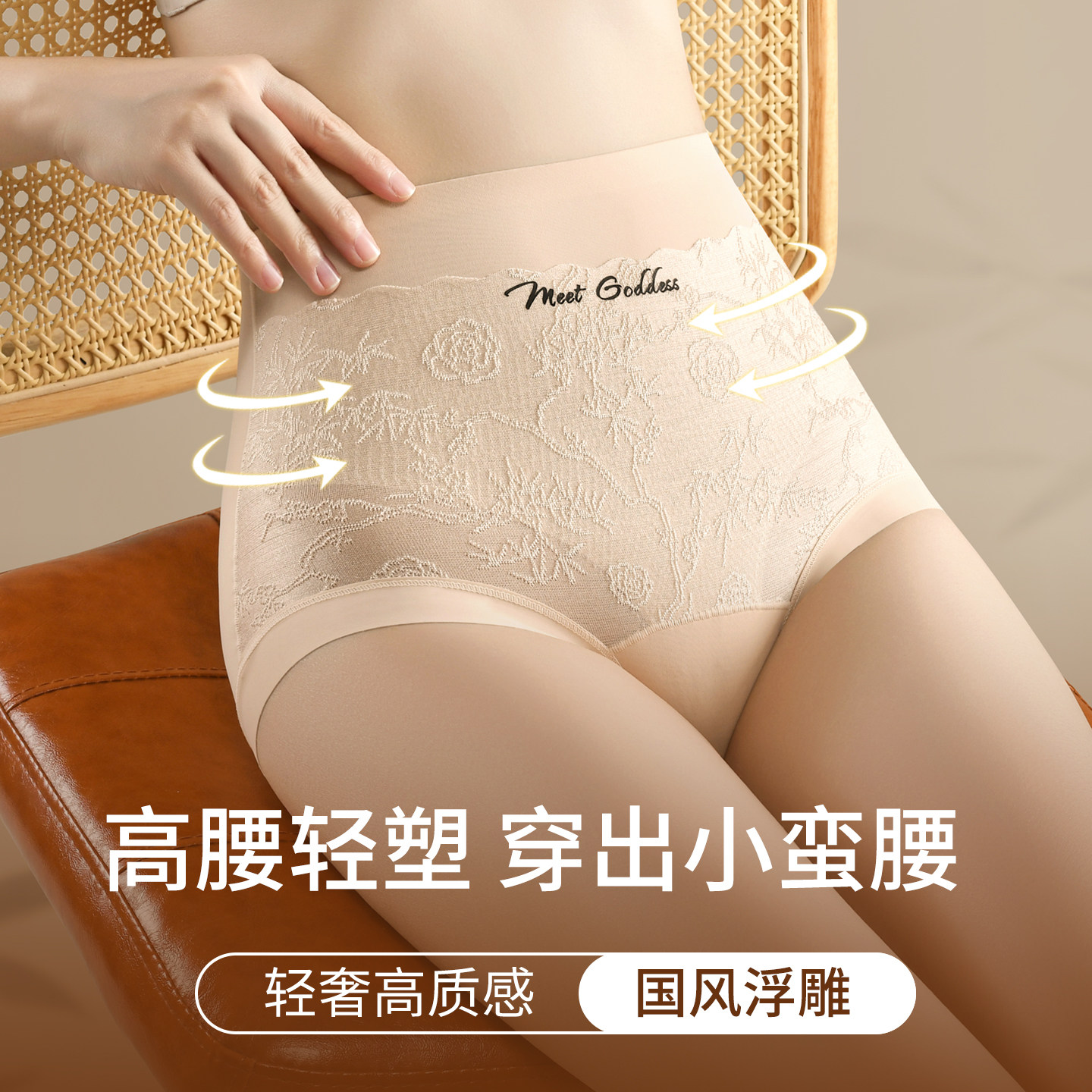 高腰收腹内裤女国风浮雕26新款无痕美体塑形提臀不夹臀三角短裤头