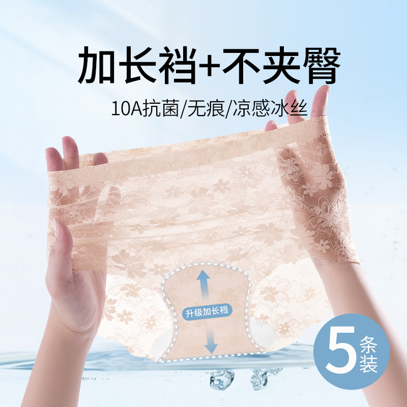 Caxltz Kgcmd加长裆冰丝无痕内裤女士蕾丝夏季凉感薄款中腰三角裤