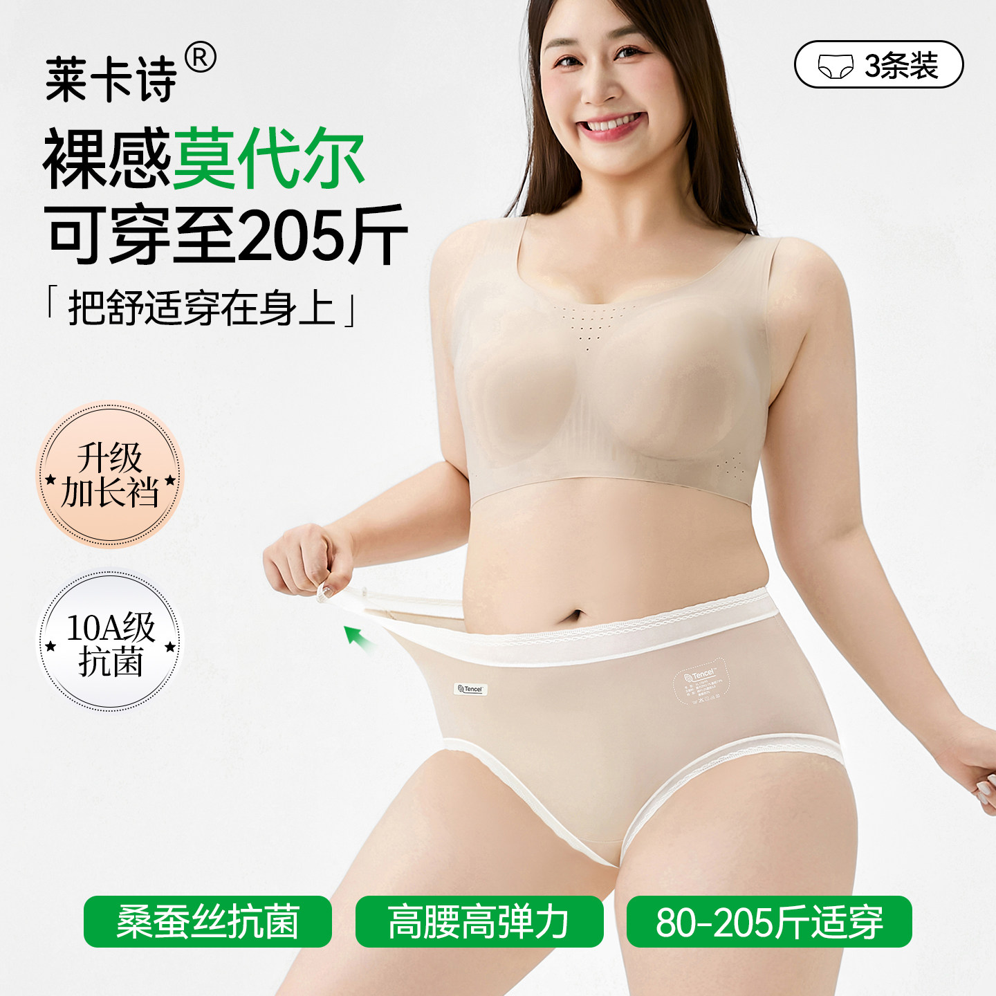 大码内裤女莫代尔200斤抗菌加长裆桑蚕丝无痕透气胖mm女士三角裤