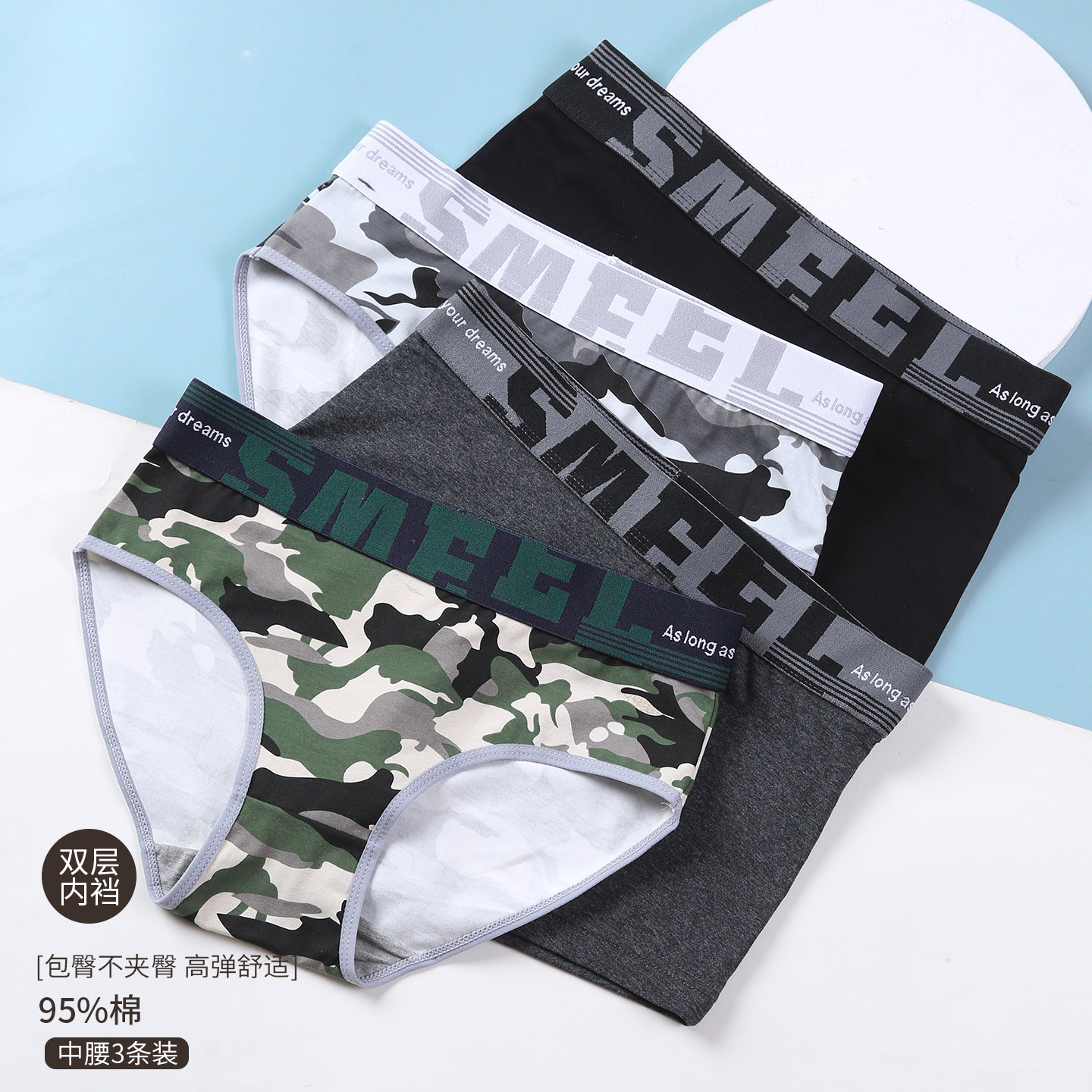 女士纯棉内裤中腰宽边迷彩四角三角中性大码印花透气LE青年时尚